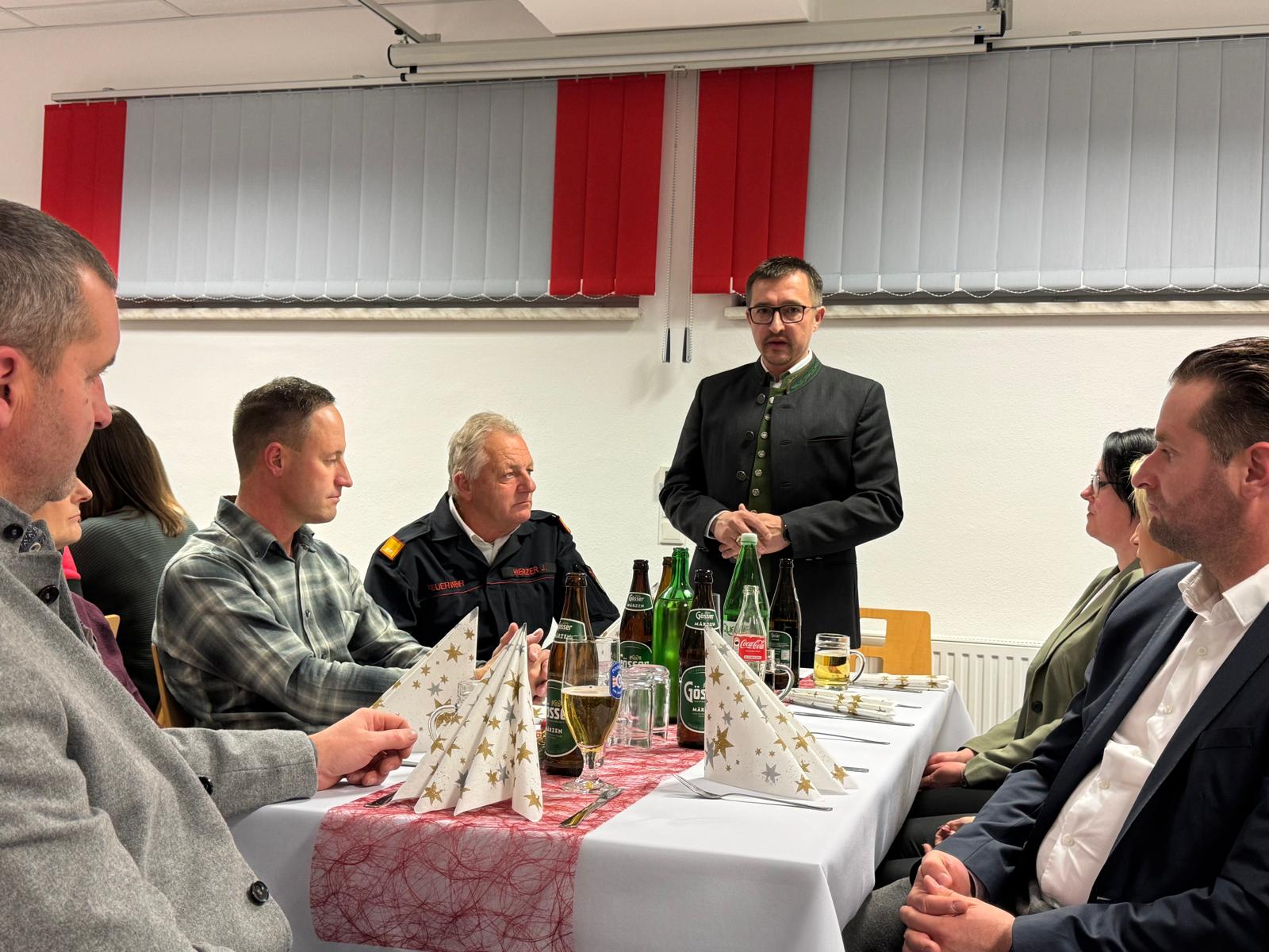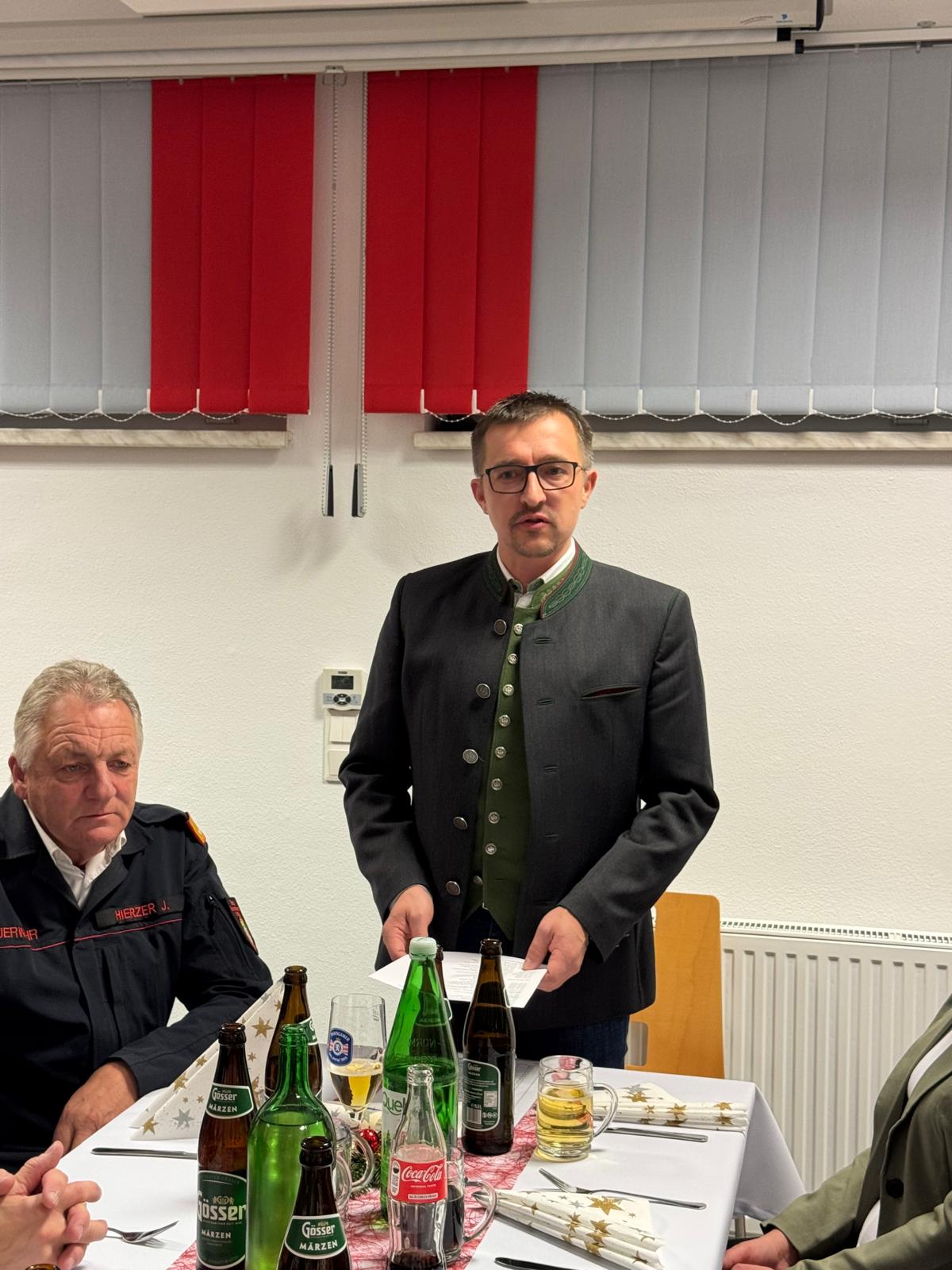 Am Samstag, dem 29. November 2025, fand die diesjährige Weihnachtsfeier im festlich dekorierten Schulungsraum des Rüsthauses statt. Nach stimmungsvoller Volksmusik begrüßte unser Kommandant HBI Ing. Bernd Plank die Ehrengäste: Vizebürgermeister Philipp Luckerbauer, BR Johann Hierzer, EHBI Josef Plank, EOBI Franz Forstner, EHBMdV Hermann Milchrahm, Gemeinderat Franz Höller sowie ESV-Obmann LM Stefan Plank. Auch zahlreiche Feuerwehrmitglieder mit ihren Partnerinnen und Partnern und private Helferinnen und Helfer waren der Einladung gefolgt.